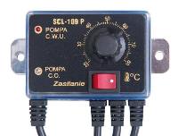 Zakres regulacji temperatury: 20oC ÷ 80oc Czujnik temperatury: rezystancyjny Przeznaczony jest do sterowania pompą c.o. oraz c.w.u. Pierwsza pompa zasilająca wymiennik c.w.u. pracuje w zakresie temperatury niższej od temperatury zadanej na potencjometrze. Po przekroczeniu przez czynnik grzejny temperatury zadanej wyłącza się pompa zasilająca bojler a załącza się pompa obiegowa c.o. Gdy temperatura spadnie poniżej zadanej następuje odwrócenie kolejności tzn. wyłącza się pompa c.o. a załącza c.w.u..